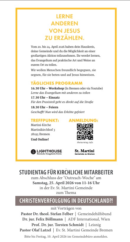 16.30 Uhr – Workshop (In Bremen oder via Youtube) Lerne das Evangelium mit anderen zu teilen